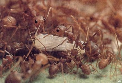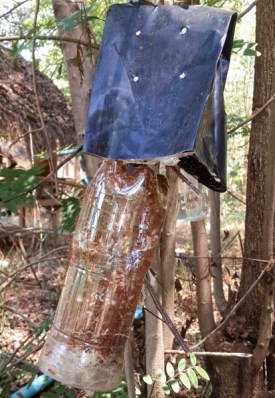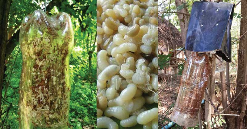 เมื่อมดแดงได้กลิ่นอาหารและน้ำหวานที่เราแขวนไว้ก็จะพากันอพยพเข้าไปอยู่ในขวด….