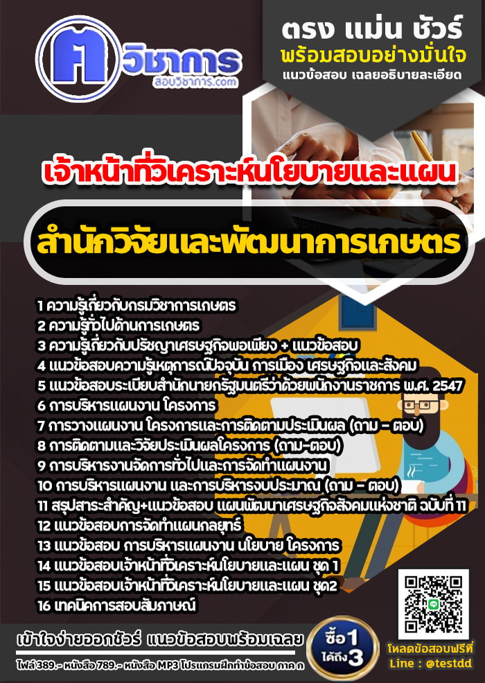 แนวข้อสอบเจ้าหน้าที่วิเคราะห์นโยบายและแผน สำนักวิจัยและพัฒนาการเกษตรจังหวัดกาฬสินธุ์