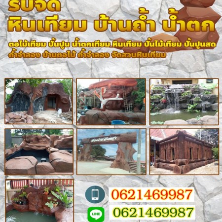 หินเทียม รับปั้นปูนเหมือนไม้ ปั้นหินเทียม ปั้นน้ำตก ออกแบบน้ำตก บ้านตอไม้