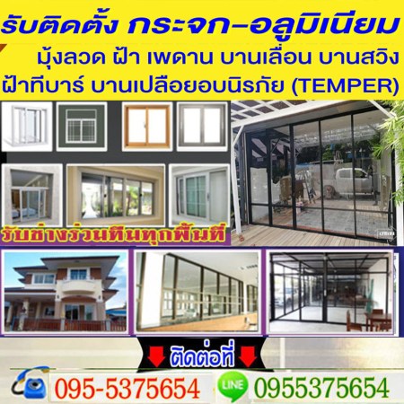 ต่อเติมห้องกระจกจังหวัดอุบลราชธานี ติดอะลูมิเนียม ช่างติดตั้งกระจก ประตูบานเลื่อน ประตูบานสวิง ประตูบานเปิด