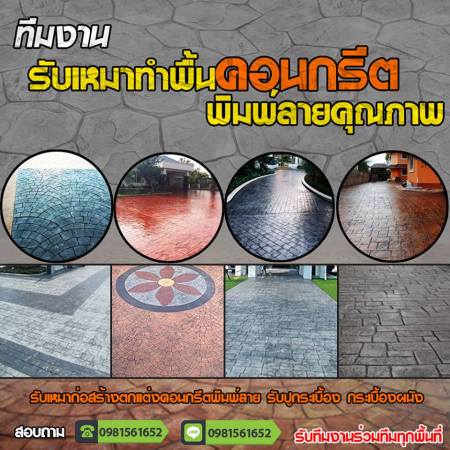 รับทำคอนกรีตพิมพ์ลาย ช่างพื้นคอนกรีตพิมพ์ลาย รับเหมาปูกระเบื้อง งานสวย คุณภาพ แข็งแกร่ง ทนทาน