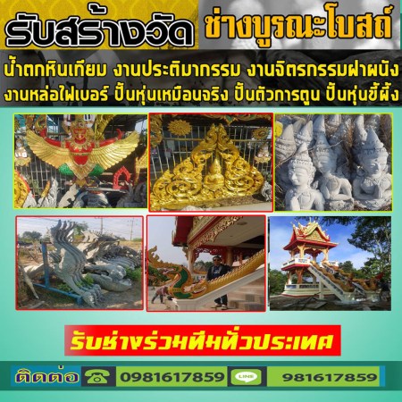 ปั้นพระจังหวัดขอนแก่น โทร: 0981617859 ลายไทย ลายกนก ปั้นติดฝาผนัง งานจิตรกรรม ซุ้มประตู หอระฆัง